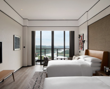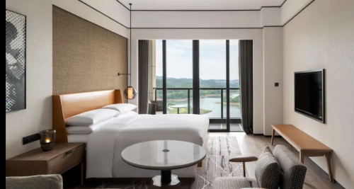 酒店坐落于绵阳市仙海旅游度假区的核心位置,设有各类客房,拥有共计1,200平方米灵活的会议及宴会使用空间,及两个匠心独运的餐厅和1个大堂吧与1个特色酒吧,并配备健身中心,儿童乐园等休闲设施,致力于为到访绵阳的商旅和休闲旅客以及本地宾客打造一处迷人的“会聚之所”。