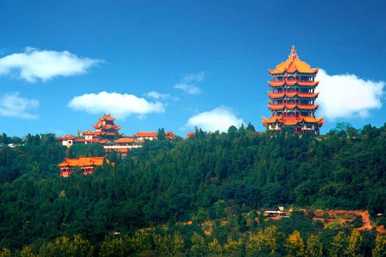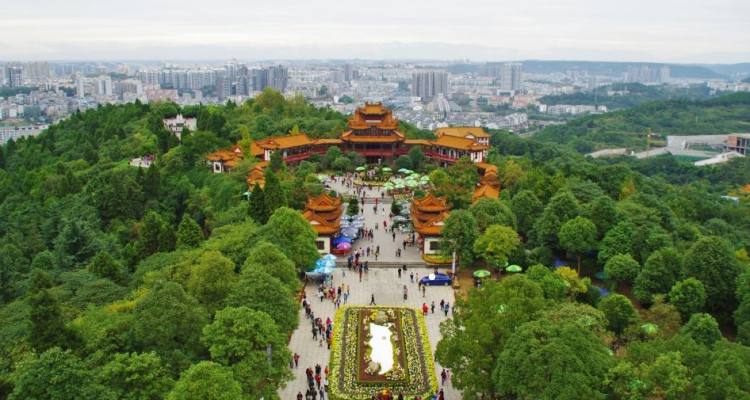 富乐山景区位于绵阳市城东两公里处,是一个以园林建筑见长、融三国遗迹在内、山水结合的新景区。汉建安十六年,刘备入蜀,刘璋延至此山,饮酒乐甚,刘备叹道:富哉!今日之乐乎!故名富乐山。