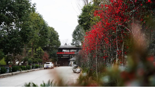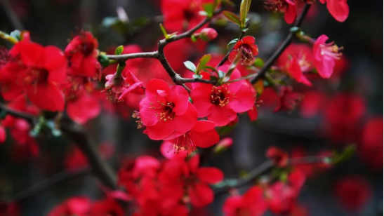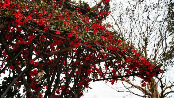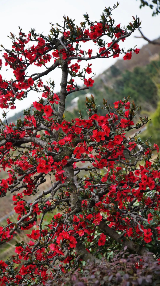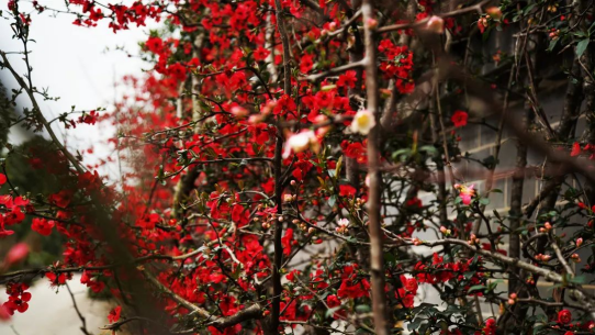 路边盛开的红梅娇艳动人