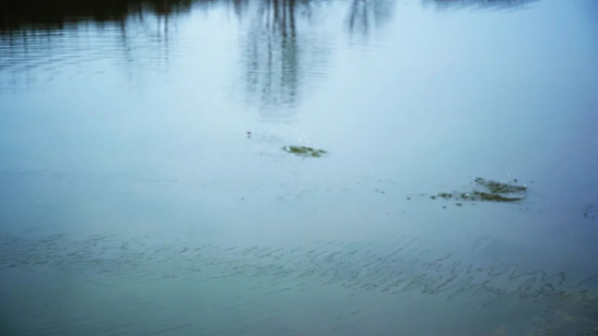 不时有几只水鸟从溪面划过