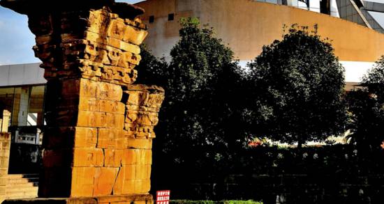 平阳府君阙,构思新颖,雕刻精美,刀技纯熟,刀法刚劲,图像生动、有趣,有许多富有生机的云气仙灵、珍禽怪兽等复杂的造像刻于阙上,具有强烈的艺术感染力和浓厚的生活气息。由南北一大一小两个阙组成,均由阙基、阙身、阙盖3部分组成。坐落在绵阳博物馆新馆舍大门前,系由条石、石板交错叠砌,上有雕刻的石头,俗称书箱石。阙是古代一种建筑,一般立在官庙和墓门之前。